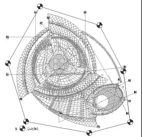 圍繞整個(gè)屋蓋部分設(shè)置的4個(gè)主控制點(diǎn)組成的多邊形控制網(wǎng) |